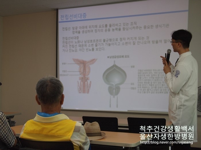 조한신 원장님은 <여름철 건강 관리 강좌>와 <전립선 비대증 강좌> 총 두가지 강의를 펼쳐 주셨는데요, 울산 남구의 추천을 받아 이 분야에 가장 전문적인 식견을 가진 조한신 원장님이 강의 요청을 받았다는 소식을 듣고 많은 어르신들이 한달음에 달려나와 주셨습니다